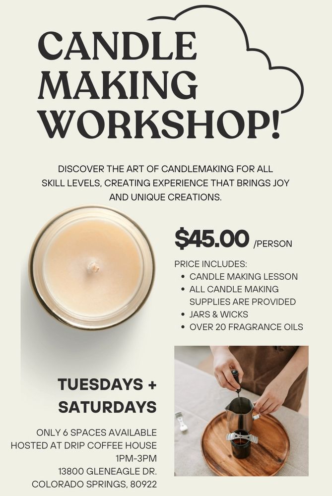 Learn the art of candle making and enjoy time with your friends and family! Booking options below.